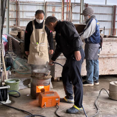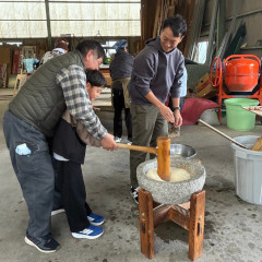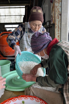 | 全員が力を合わせて、おいしいお餅づくり | ||